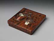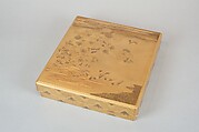 Box for Square Calligraphy Paper (shikishi-bako) with an Auspicious Landscape of Young Pines and Nandina Shrubs
