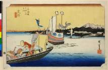 Kuwana: The Landing of the Shichiri Ferry Crossing (Kuwana, Shichiri watashiguchi), from the series "Fifty-three Stations of the Tokaido (Tokaido gojusan tsugi no uchi)," also known as the Hoeido Tokaido