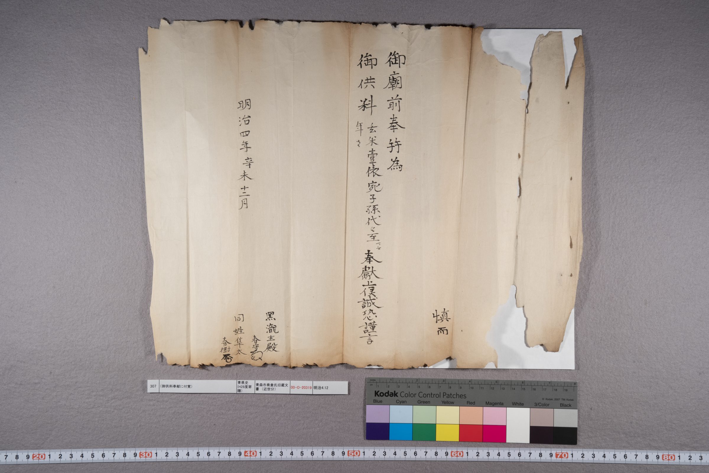 (御供料奉献に付覚)