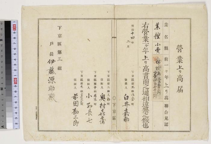 ![[白井嘉助賣藥関係文書]營業上り高届](https://lapis.nichibun.ac.jp/image?did=6&pic=2&fid=3-101-8_01_01.jpg)