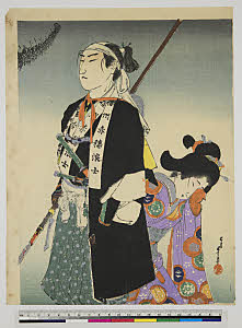 Acteur Ichikawa Danjuro, waarschijnlijk als de rover Sadakuro in het stuk over de 47 Ronin. Hosoe