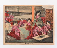 Picture of Sights in Yokohama: Woman with a Ringer, Lamp Post, a Steamboat at Full Sail and a Woman with a Sewing Machine