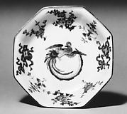 Nanking Hexagonal Plate with Crag, Flowers, and Birds in Overglaze Enamels