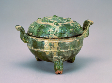 Vessel in Shape of Bronze Ding, Green Glaze