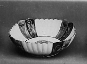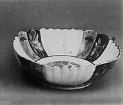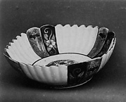 Lobed plate with design of chrysanthemums and cherry blossoms