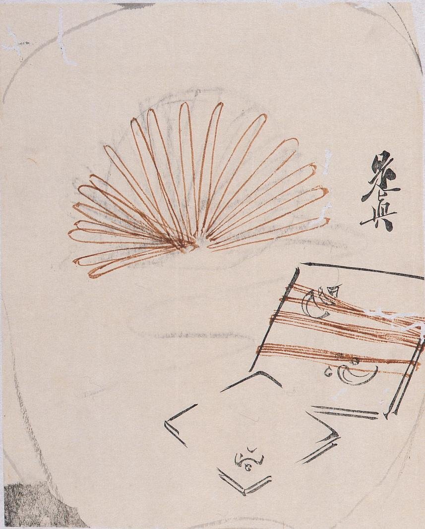 Colored Black Print: Sketch for a Round Fan, Kaishi (paper) (Shibata Zeshin's Block Print, Black Print, Other Prints)