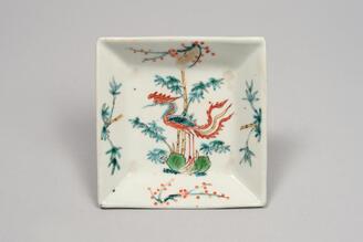 五彩鳳凰文角皿