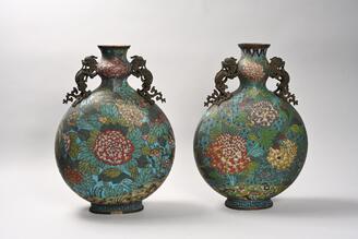 銅胎七宝獣耳扁壺
