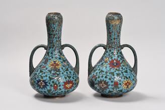銅胎七宝唐草絃耳瓶