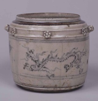 Drum-shaped Fresh Water Container with Dragons in Underglaze Blue