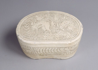 三彩蓮花唐子文枕 磁州窯