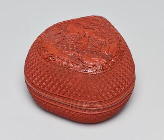 Peach-Shaped Box with Figures in a Landscape
