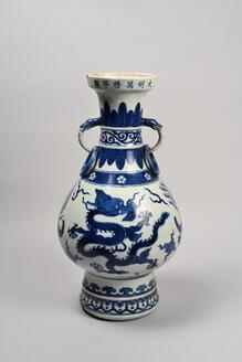 青花龍鳳文双耳瓶