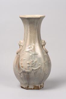 白釉雲龍浮紋獣環耳瓶