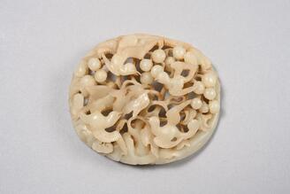 葡萄山雀彫白玉飾