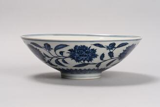 Bowl, Peony arabesque in underglaze blue