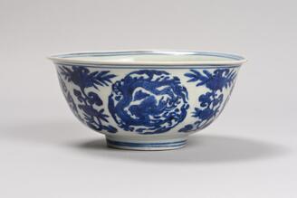 Bowl, Design of dragon roundel in underglaze blue