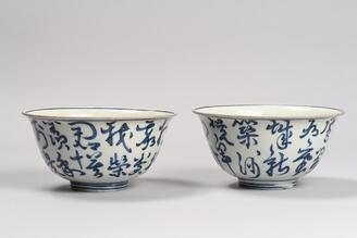 Bowl, Chinese character design in underglaze blue