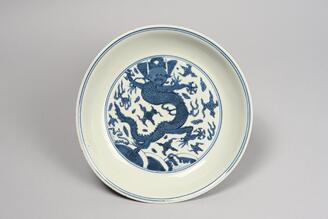 Dish, Design of dragon in underglaze blue