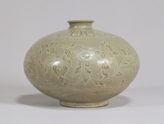 Vase with Vines, Buncheong ware with sanggam inlay