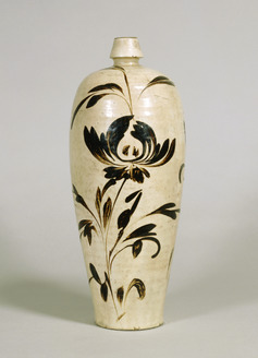 Vase White glaze with peony design in underglaze iron pigment