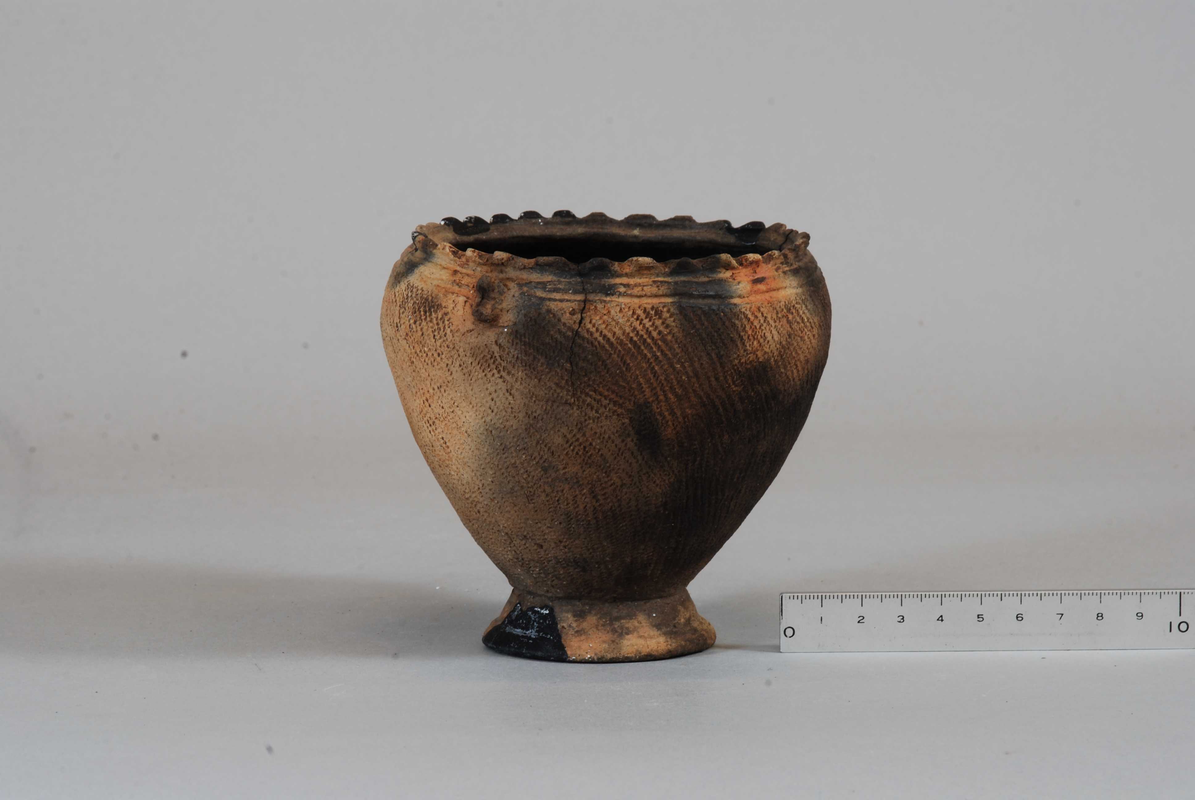 Jar, Brown glaze with carved design