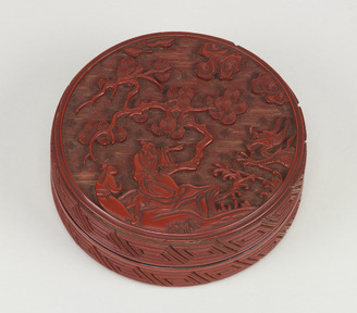 Covered Box Dragon and cloud design in carved red lacquer