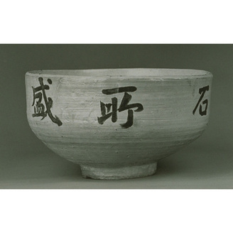 Punch'ong Glazed Stoneware Bowl with Characters in Underglaze Iron on White Slip (Painted Mishima Style)
