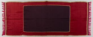 Selendang (Shawl), Ikat weave with floral arabesque design on red ground