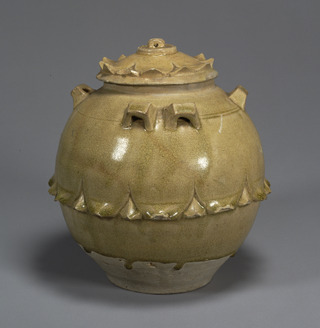 Jar with Six Handles, Celadon glaze with carved lotus petals