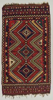 Carpet with Nested Diamonds and Abstract Designs, Tapestry-weave cotton and wool