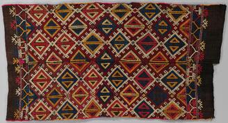 Embroidered Rug with Bands of Linked Diamonds and Geometric Patterns