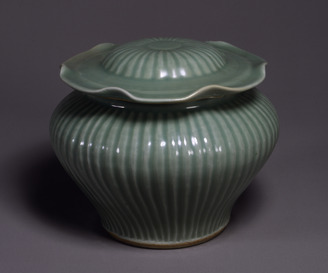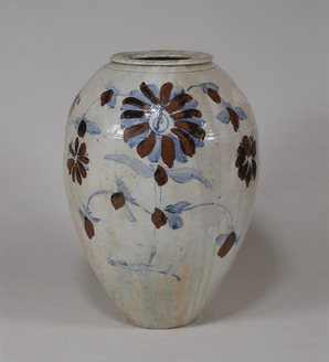 Ovoid covered jar with flowering plants