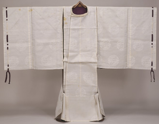 Winter Noshi (Informal Court Robe) of Prince Yorihito with Chrysanthemum Roundels on White Aya (Twil