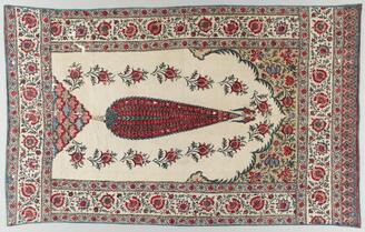 Chintz Formerly preserved by the Ii family (Hikone Chintz), Arabesque and tumpal (serrated edge) design on white ground