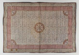Chintz Floor Covering with Medallions and Floral Vines
