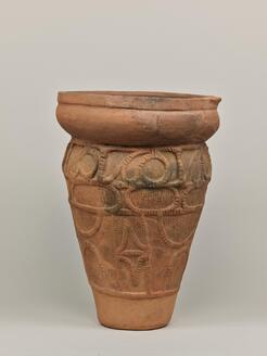 Oishitai Site: A red-pigmented pot with its cut-off top