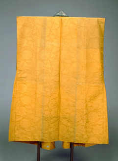 Jinbaori (Coat Worn over Armor), Peony scrolls on yellow damask