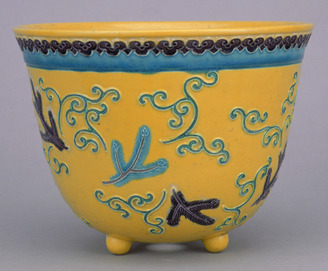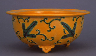 Planter in Yellow Cochin-China Glaze with Pines and Arabesques (Eiraku Zengoro Ceramic Ware from the Konoike Family)