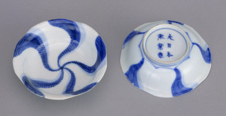 Dishes with Twirling Flower Design in Underglaze Blue (Eiraku Zengoro Ceramic Ware from the Konoike Family)