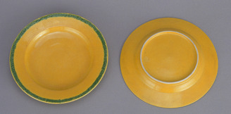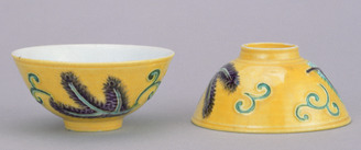 Dishes with Pines and Arabesques in Yellow Cochin-China Glaze (Eiraku Zengoro Ceramic Ware from the Konoike Family)