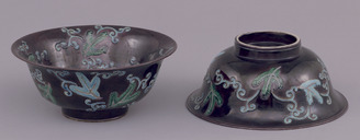 Bowls with Pines and Arabesques in Purple Cochin-China Glaze (Eiraku Zengoro Ceramic Ware from the Konoike Family)