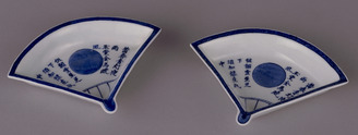 Fan-shaped Mukozuke Dishes with Underglaze Blue (Eiraku Zengoro Ceramic Ware from the Konoike Family)
