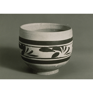 Cizhou Bowl with Peonies in Iron Black on White Slip