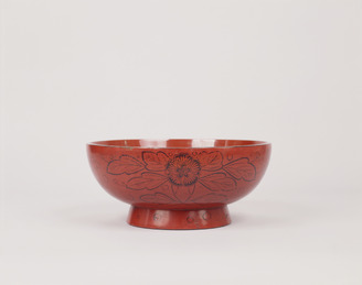 Footed Bowl with Peonies and Arabesques in Underglaze Blue and Overglaze Enamels (Imari Ware)
