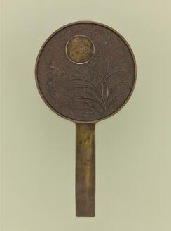 Hand Mirror with Pines, Waves, Rabbit, and Moon