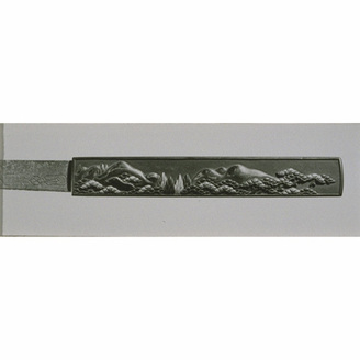 Knife (Kozuka) with Scene of Mountains and Forests in High Relief Carving, Signed Goto Renjo