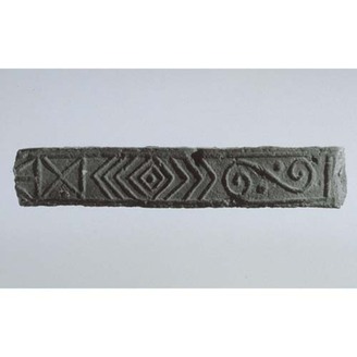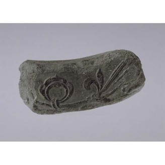 Fragment of Flat Eaves Tile with Honeysuckle and Arabesque Design Excavated from Horyu-ji Temple