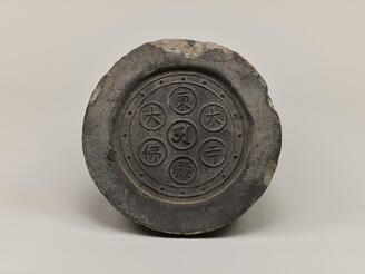 Fragment of a Round Tile with the Characters for Anraku-ji Temple