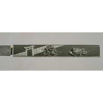 Knife (Kozuka) with Horsetails and Sickle in High Relief Carving
